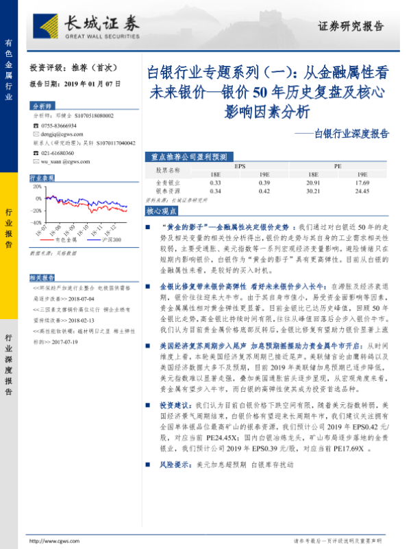【长城证券】【20190107】20190107-长城证券-白银行业深度报告:白银行业专题系列(一):从金融属性看未来银价—银价50年历史复盘及核心影响因素分析-23页 行业研究