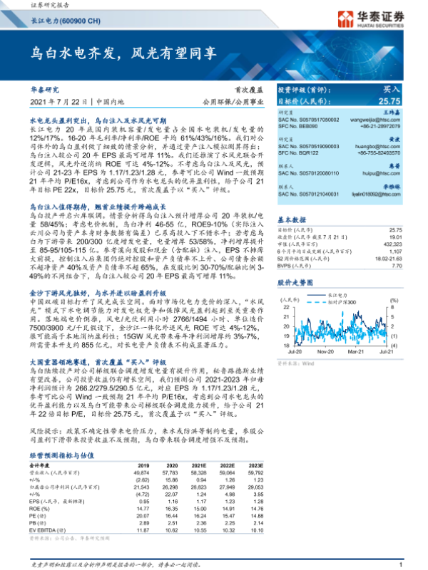 【华泰证券】【20210722】长江电力-600900.SH-乌白水电齐发,风光有望同享-28页 行业研究