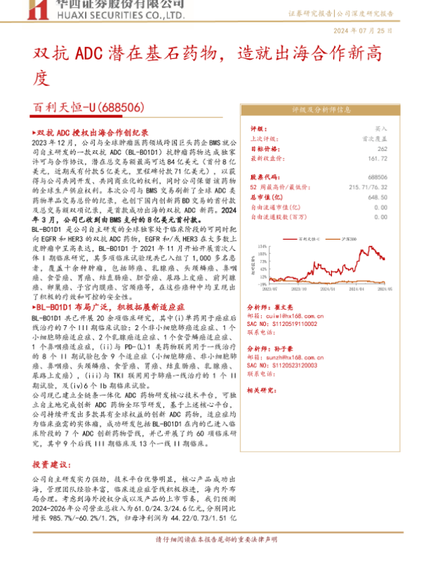 【海通国际】【202409】百利天恒(688506)首次覆盖:十年磨一剑,双抗ADC领军企业-35页 行业研究