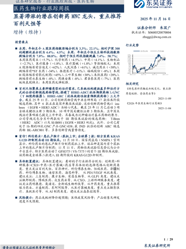 【东吴证券】【202511】医药生物行业跟踪周报·行业跟踪周报·医药生物-29页 证券期货研究报告