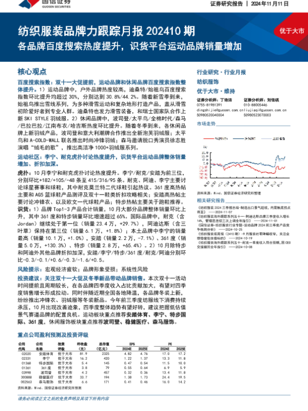 【国信证券】【20241111】纺织服装品牌力跟踪月报202410期:各品牌百度搜索热度提升,识货平台运动品牌销量增加-13页 行业研究