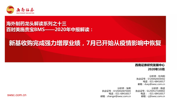 【西南证券】【202010】百时美施贵宝BMS——2020年中报解读-14页 行业研究
