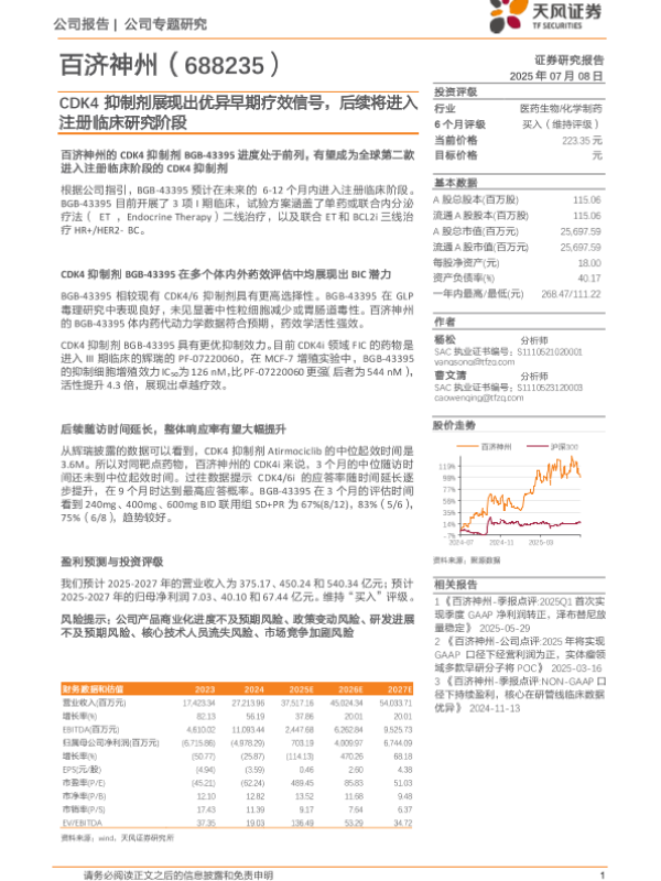 【天风证券】【20250708】百济神州CDK4抑制剂展现出优异早期疗效信号,后续将进入注册临床研究阶段-10页 证券期货研究报告