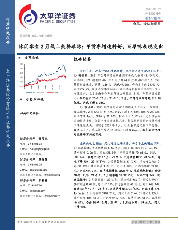 【太平洋证券】【20210309】20210309-太平洋-休闲零食2月线上数据跟踪:年货季增速转好,百草味表现突出-8页 行业研究