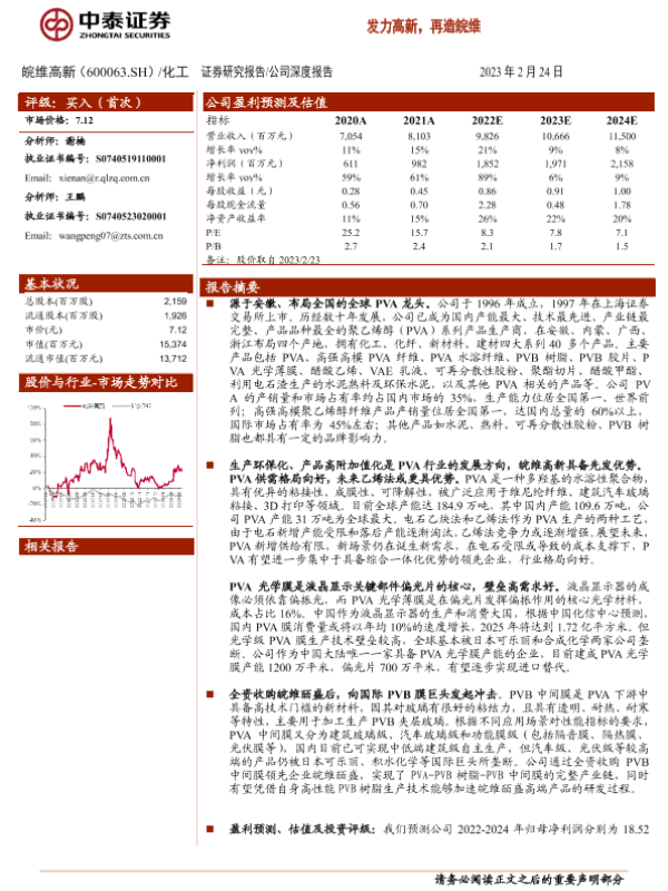 【中泰证券】【20230224】发力高新,再造皖维-28页 行业研究