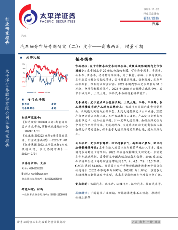 【太平洋证券】【20231102】汽车细分市场专题研究(二):皮卡——商乘两用,增量可期-23页 行业研究
