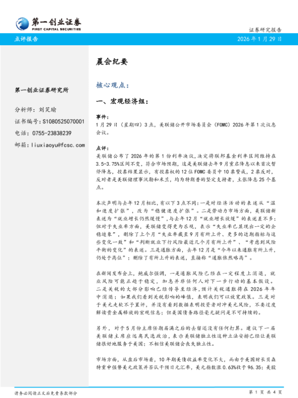 【第一创业证券】【202601】晨会纪要-4页 会议纪要