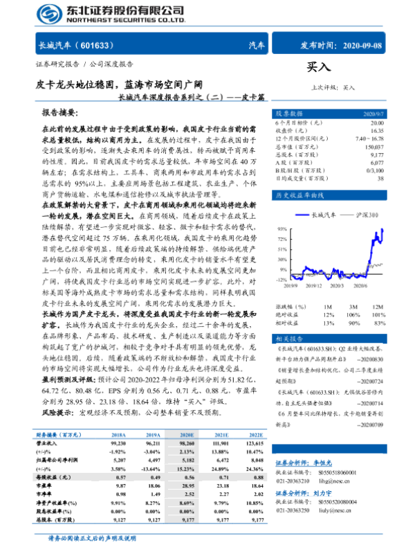 【东北证券】【20200908】长城汽车深度报告系列之(二)——皮卡篇:皮卡龙头地位稳固,蓝海市场空间广阔-41页 行业研究