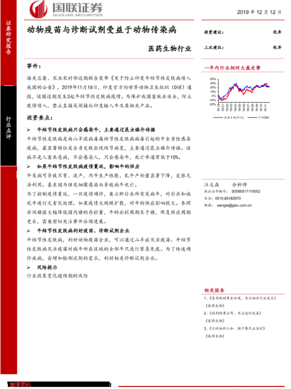 【国联证券】【20191212】医药生物行业:动物疫苗与诊断试剂受益于动物传染病-3页 行业研究