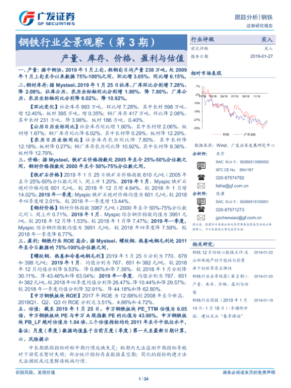 【广发证券】【20190127】20190127-广发证券-钢铁行业全景观察(第3期):产量、库存、价格、盈利与估值-24页 行业研究