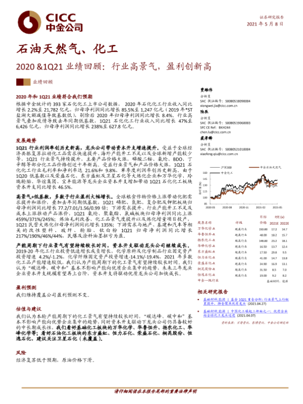【中金公司】【20210508】石油天然气、化工:2020&1Q21业绩回顾:行业高景气,盈利创新高-13页 行业研究