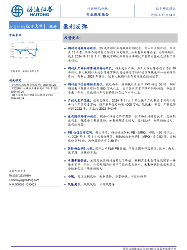 【海通证券】【20241104】钢铁行业深度报告:盈利反弹-11页 行业研究