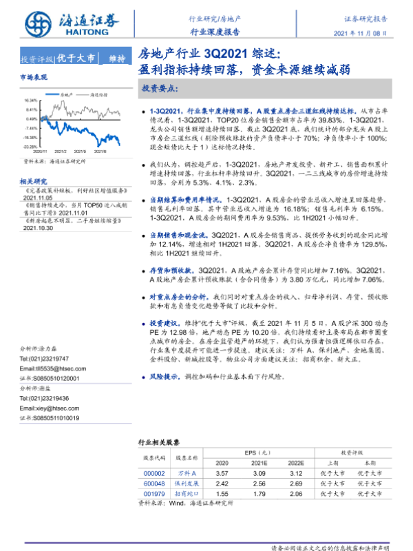【海通证券】【20211108】房地产行业3Q2021综述:盈利指标持续回落,资金来源继续减弱-26页 行业研究