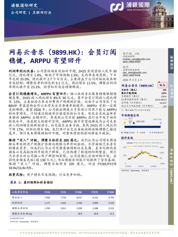 【浦银国际】【202603】网易云音乐(9899.HK):会员订阅稳健,ARPPU有望回升-7页 证券期货研究报告