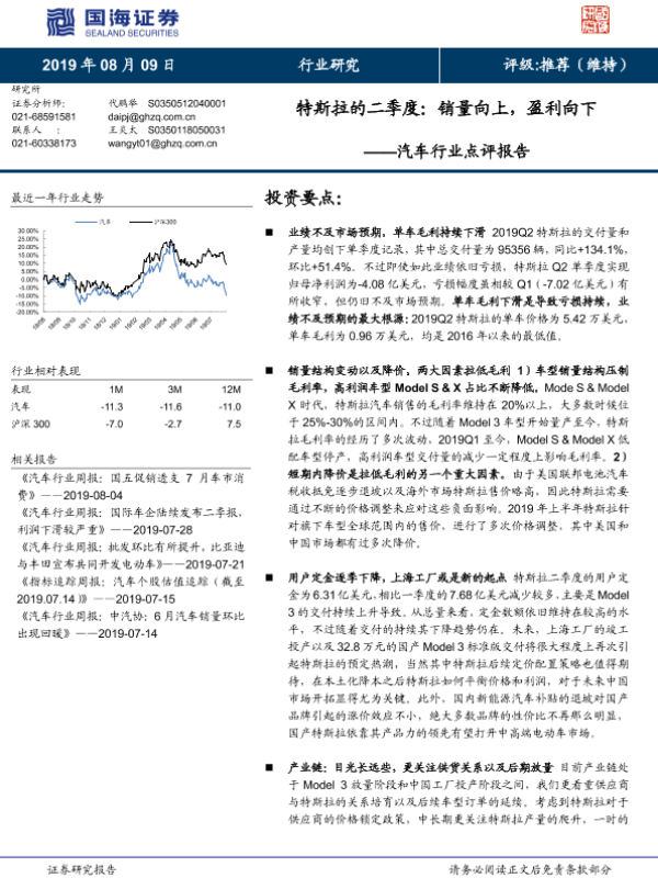 【国海证券】【20190809】特斯拉的二季度:销量向上,盈利向下-15页 行业研究