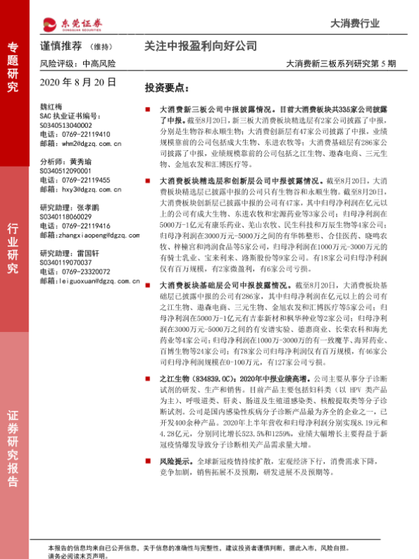【东莞证券】【20200820】大消费新三板系列研究第5期:关注中报盈利向好公司-12页 行业研究