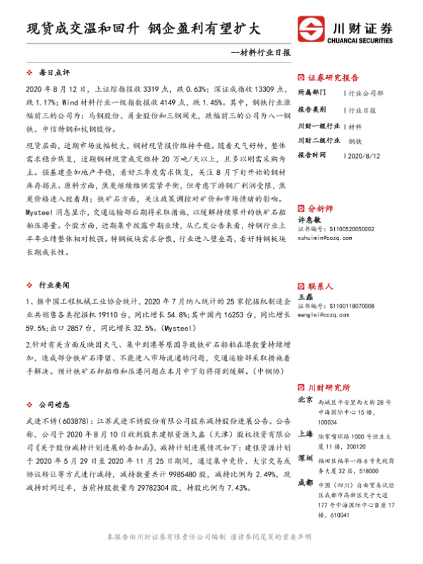 【川财证券】【20200812】现货成交温和回升 钢企盈利有望扩大-3页 证券期货研究报告