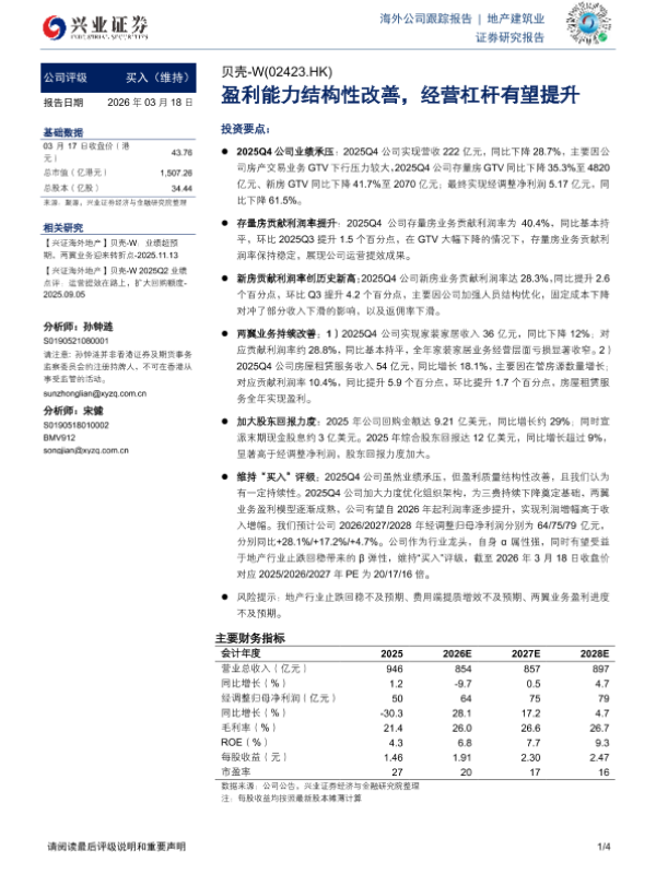 【兴业证券】【202603】贝壳-W:业绩超预期,两翼业务迎来转折点-4页 公司研究