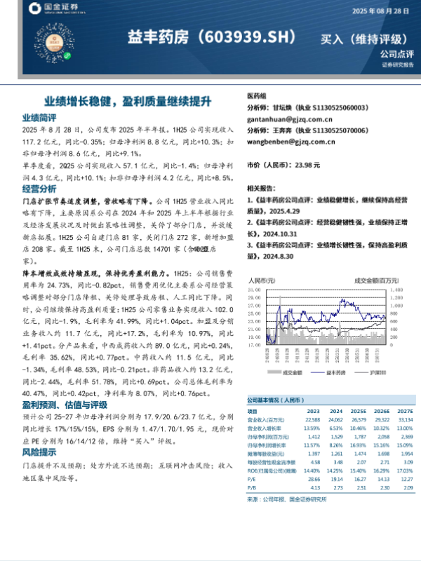 【国金证券】【20250828】益丰药房-业绩增长稳健_盈利质量继续提升-4页 证券期货研究报告