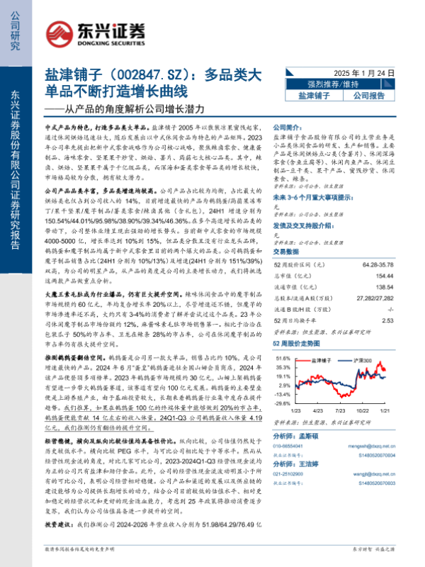 【东兴证券】【20250124】盐津铺子:多品类大单品不断打造增长曲线-17页 行业研究