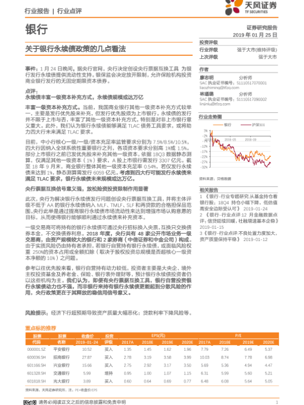 【天风证券】【20190125】关于银行永续债政策的几点看法-5页 行业研究