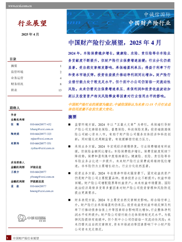 【中诚信国际】【202504】2025年中国财产险行业展望-14页 行业研究