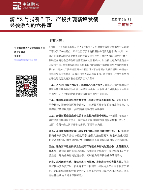【中证鹏元资信评估股份有限公司】【20250605】新3号指引下产投实现新增发债必须做到的六件事-11页 行业研究