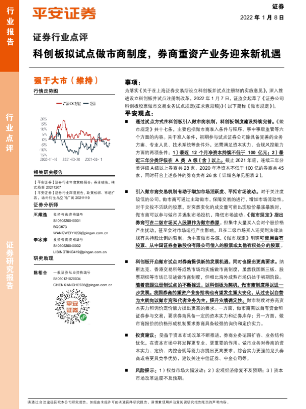 【平安证券】【20220108】证券行业点评:科创板拟试点做市商制度,券商重资产业务迎来新机遇-4页 行业研究