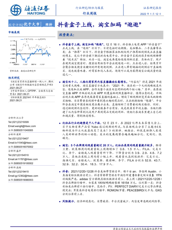 【海通证券】【20220112】20220112-海通证券-纺织与服装行业周报:抖音盒子上线,淘宝加码“逛逛”-10页 行业研究