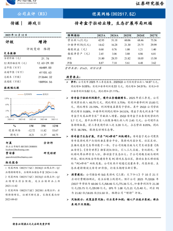 【财信证券】【202511】公司点评(R3) 恺英网络(002517.SZ)-3页 证券期货研究报告