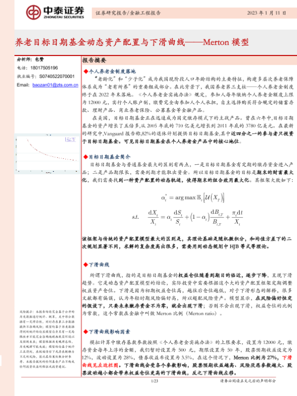 【中泰证券】【20230111】养老目标日期基金动态资产配置与下滑曲线——Merton模型-23页 行业研究