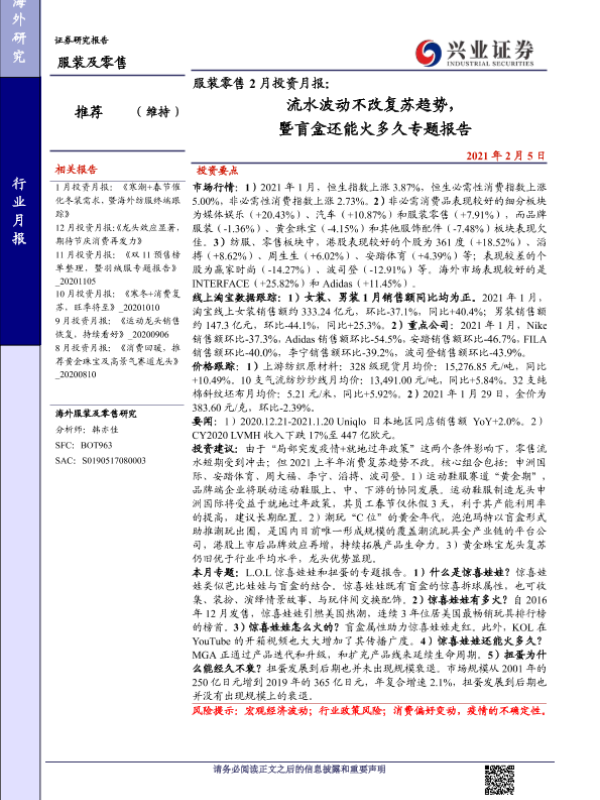 【兴业证券】【20210205】2021.02.05-流水波动不改复苏趋势,暨盲盒还能火多久专题报告-24页 行业研究