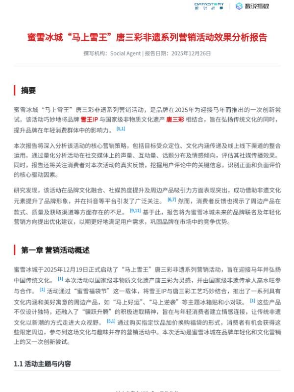 【Social Agent】【202512】蜜雪冰城"马上雪王"唐三彩非遗系列营销活动效果分析报告-17页 市场调研