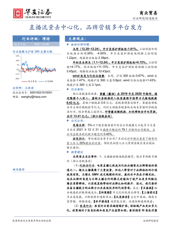 【华安证券】【20211226】商业贸易行业:直播流量去中心化,品牌营销多平台发力-21页 行业研究