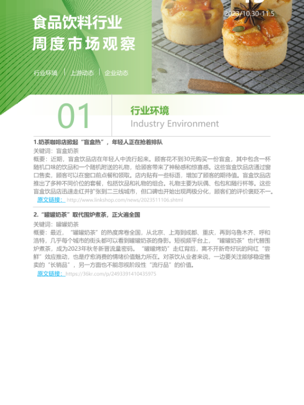 【艾瑞咨询】【20231105】2023年第45周:食品饮料行业周度市场观察-5页 行业研究