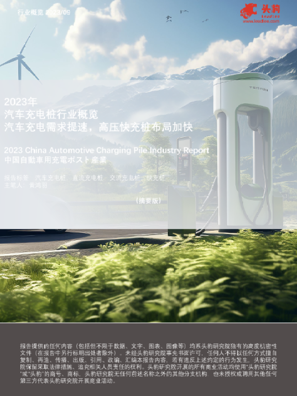 【头豹研究院】【202309】2023年汽车充电桩行业概览-汽车充电需求提速-高压快充桩布局加快(摘要版)-14页 行业研究