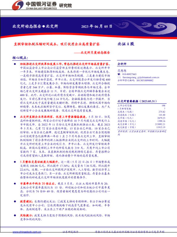 【银河证券】【20230605】北交所月度动态报告:直联审核机制压缩时间成本,吸引优质企业高质量扩容-23页 行业研究