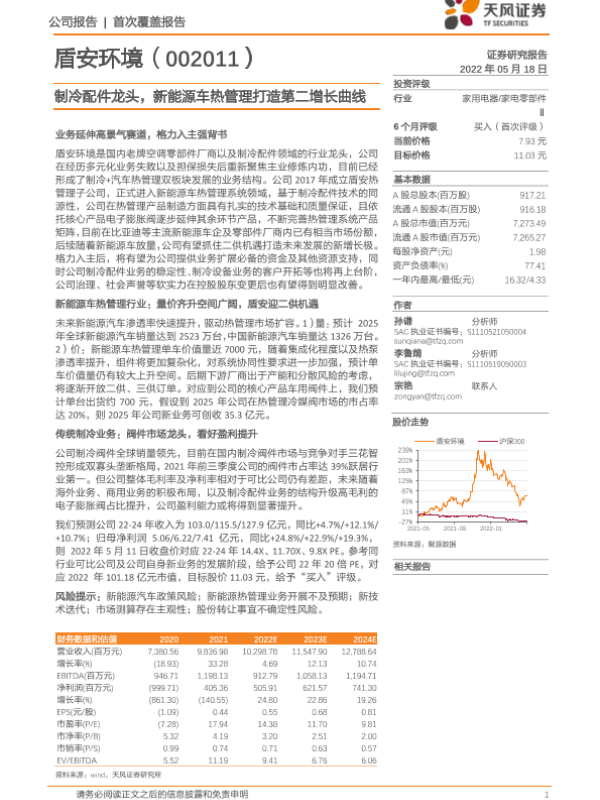 【天风证券】【20220518】盾安环境-002011.SZ-制冷配件龙头,新能源车热管理打造第二增长曲线-26页 行业研究
