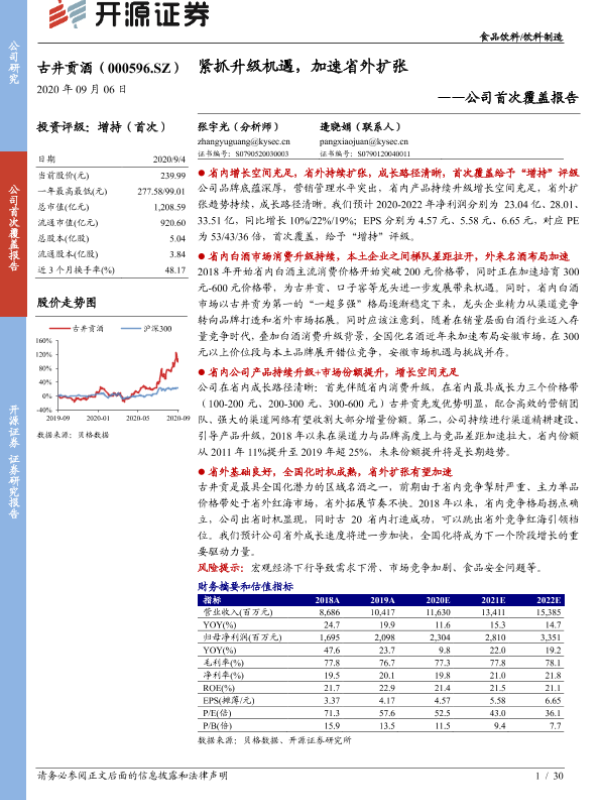 【开源证券】【20200906】20200906-开源证券-古井贡酒-000596.SZ-公司首次覆盖报告:紧抓升级机遇,加速省外扩张-30页 行业研究