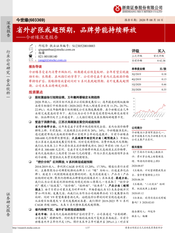【浙商证券】【20200810】今世缘深度报告:省外扩张或超预期,品牌势能持续释放-37页 行业研究