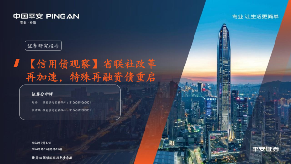 【平安证券】【20240917】信用债观察:省联社改革再加速,特殊再融资债重启-10页 行业研究