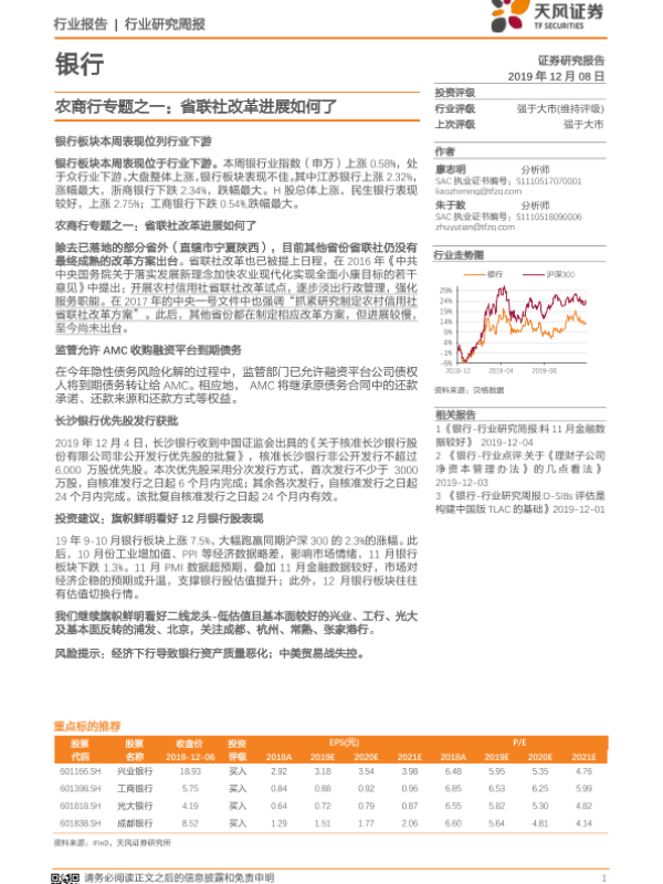 【天风证券】【20191208】银行行业研究周报:农商行专题之一:省联社改革进展如何了-14页 行业研究