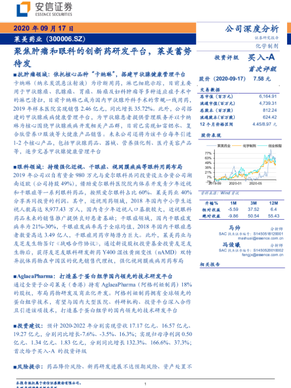 【安信证券】【20200917】聚焦肿瘤和眼科的创新药研发平台,莱美蓄势待发-15页 行业研究