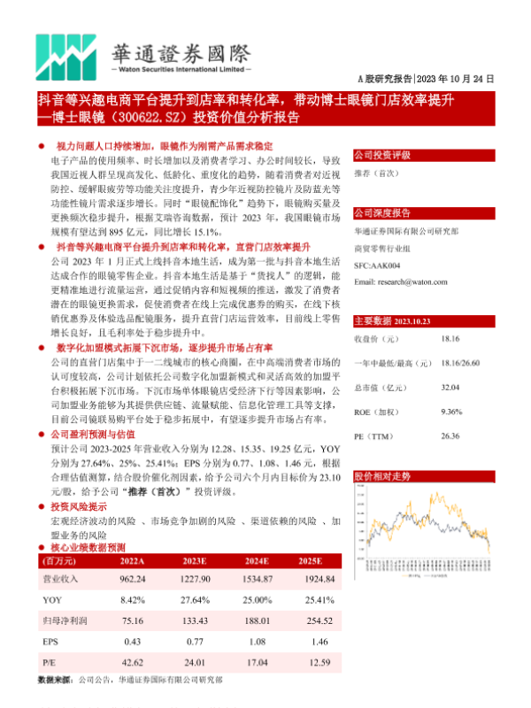 【华通证券国际】【20231024】抖音等兴趣电商平台提升到店率和转化率,带动博士眼镜门店效率提升-23页 行业研究