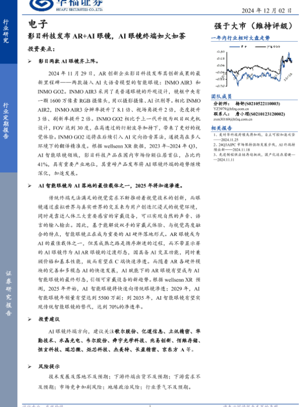【华福证券】【20241202】电子行业定期报告:影目科技发布AR+AI眼镜,AI眼镜终端如火如荼-23页 行业研究