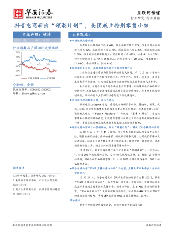 【华安证券】【20211031】20211031-华安证券-互联网传媒行业周报:抖音电商新出“领潮计划”,美团成立特别零售小组-13页 行业研究