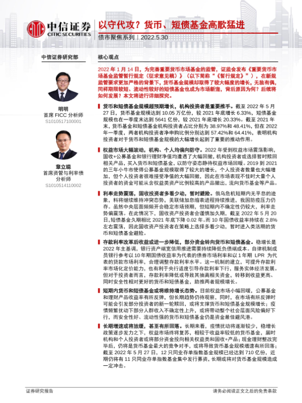 【中信证券】【20220530】债市聚焦系列:以守代攻?货币、短债基金高歌猛进-25页 行业研究