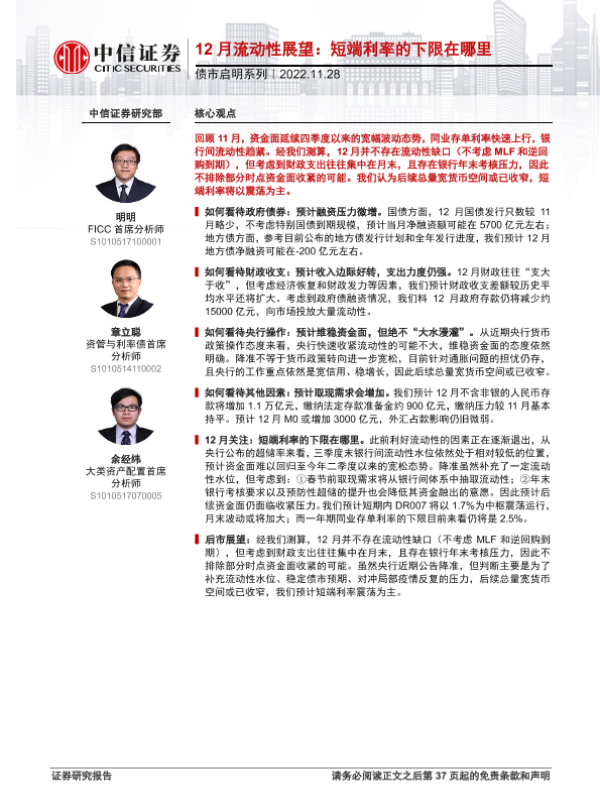 【中信证券】【20221128】12月流动性展望:短端利率的下限在哪里-38页 行业研究