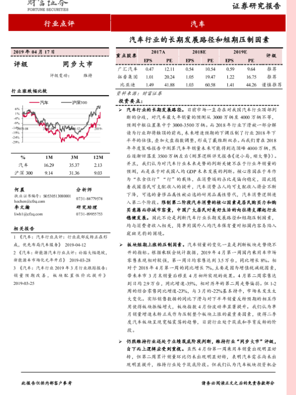 【财信证券】【20190417】汽车行业点评:汽车行业的长期发展路径和短期压制因素-3页 行业研究