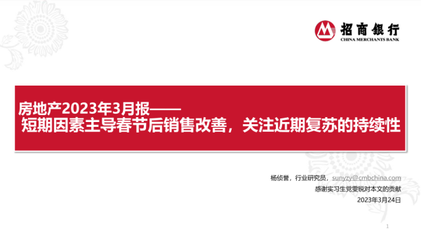 【招商银行】【20230324】房地产行业2023年3月报:短期因素主导春节后销售改善,关注近期复苏的持续性-22页 行业研究
